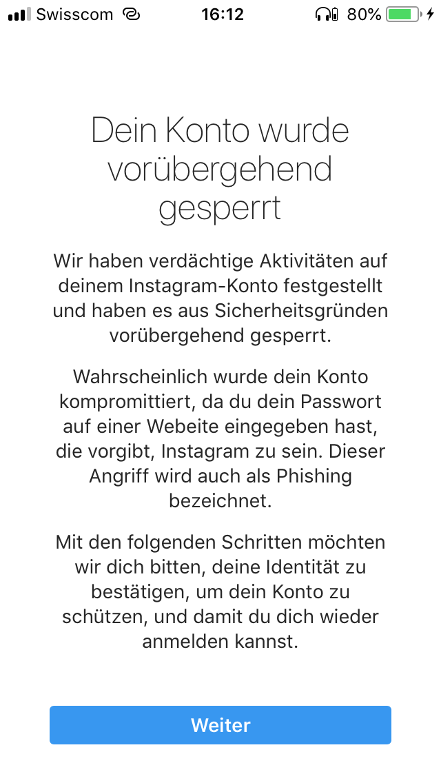 Instagram Account Gehackt Und Gesperrt Phishing Angriff